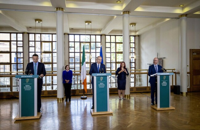 The Tánaiste, Taoiseach and Health Minister announcing the plans yesterday. Rollingnews.ie