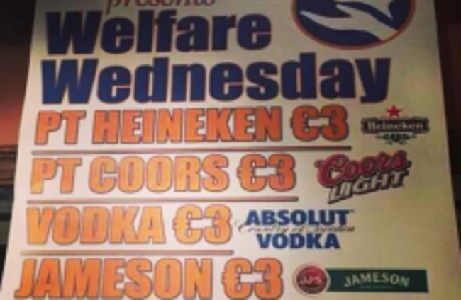 A ‘WELFARE WEDNESDAY’ drinks promotion at Liz Delaney’s pub in Coolock, Dublin is getting a lot of attention.