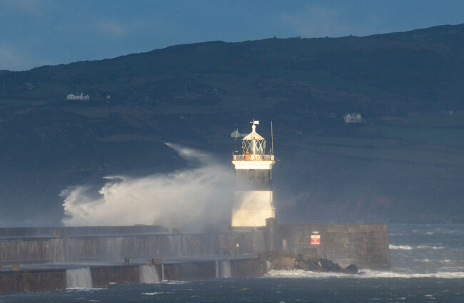 Waves crash near the port of Holyhead during Storm Daragh this month. Alamy