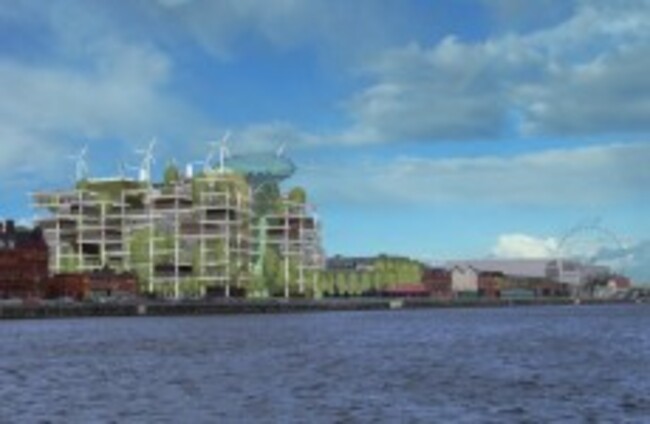 Computer-generated impression of what the 'vertical park' on Dublin's north quays would look Mahoney Architecture