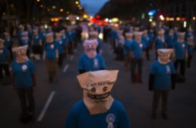 Workers from Telefonica phone company take part in a demonstration blocking the traffic and protesting against the unjustified dismissals at their company ahead of a general strike in Barcelona. Emilio Morenatti/AP/Press Association Images