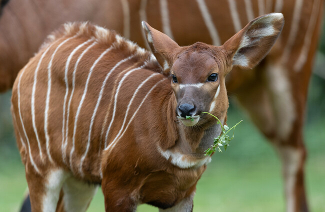 A critically endangered female bongo calf, who was born at Dublin Zoo in February.