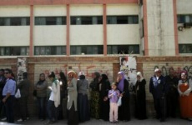 Egyptian voters line up to cast their votes at a polling station in Cairo today. AP Photo/Khalil Hamra