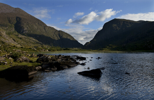 The Gap of Dunloe is a narrow mountain pass forged between the MacGillycuddy Reeks and Purple Mountain. The path is popular with visitors, with locals often guiding tourists who sit on the trap, a light form of carriage, that is pulled by the horse.