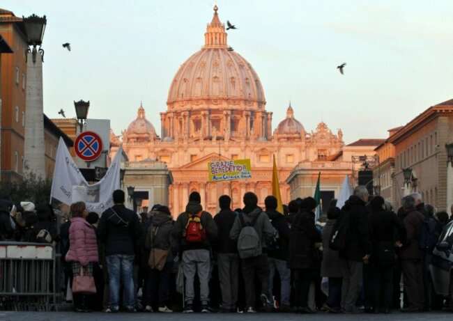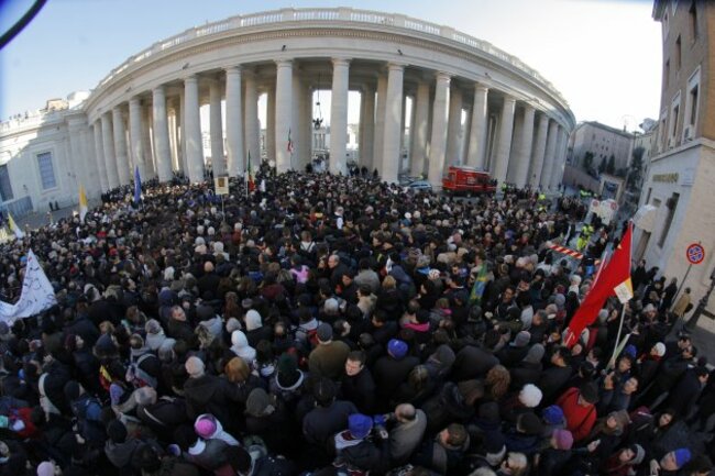 Faithful  gather to attend Pope Benedict XVI’s last general audience in St. Peter’s Square, at the Vatican early this morning (AP Photo/Dmitry Lovetsky)