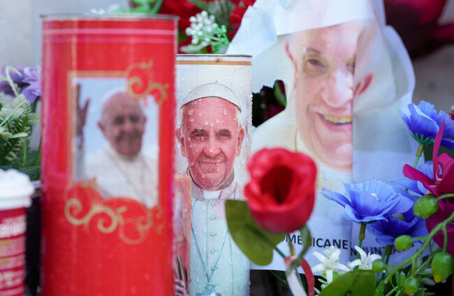 Candles and flowers for Pope Francis are seen at the Agostino Gemelli Polyclinic in Rome Alamy Stock Photo