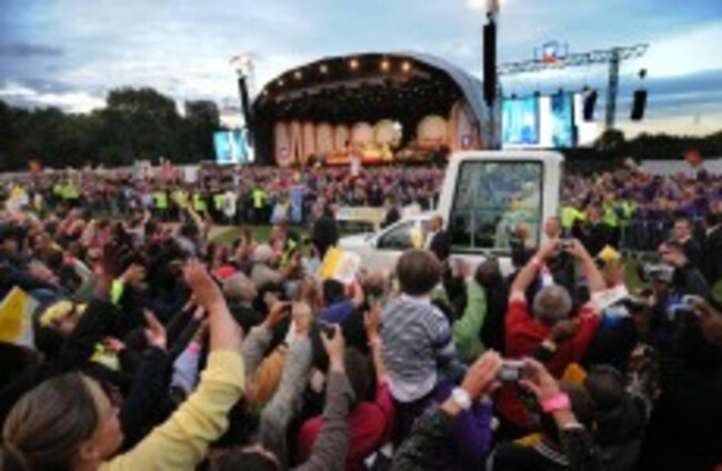 Pope Benedict XVI arrives for a Prayer Vigil at Hyde Park in London yesterday evening Fiona Hanson/PA Wire