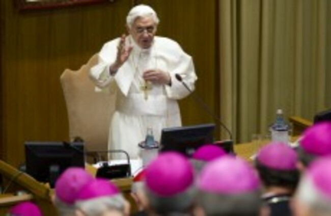 Pope Benedict XVI addresses the plenary assembly of the Italian Bishops' Conference yesterday. AP Photo/Andrew Medichini/PA