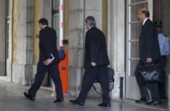 The IMF's Paul Thomsen, the EC's Jurgen Kroger and the ECB's Rasmus Ruffer leave Portugal's finance ministry after talks last month. Francisco Seco/AP