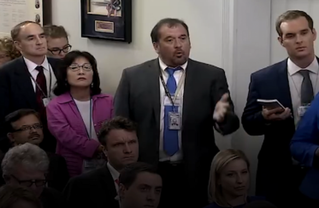 Brian Karem at yesterday's White House press briefing. Screengrab