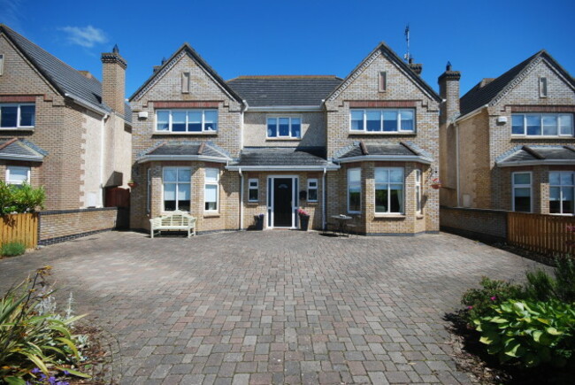 THIS DETACHED DOUBLE-fronted five bedroom home in Drogheda, Co Louth has landscaped gardens to the front and rear.