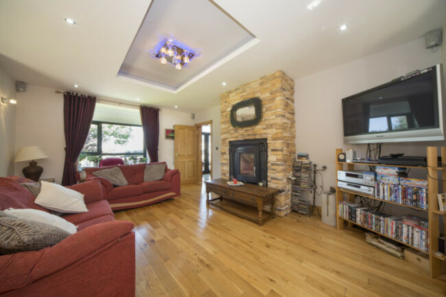 This four-bedroom, four-bathroom detached house in Mullingar, Co Westmeath has a partially stone-clad facade.
