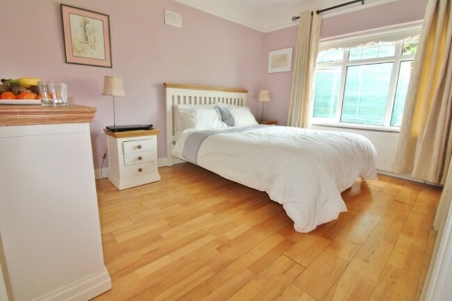 The house is bright and spacious and in showhouse condition. There are two reception rooms – both dual aspect –  and feature fireplaces. The kitchen/dining room has porcelain flooring, granite-effect countertops and integrated appliances. The master bedroom has solid timber flooring and fitted wardrobes and there are two more bedrooms.