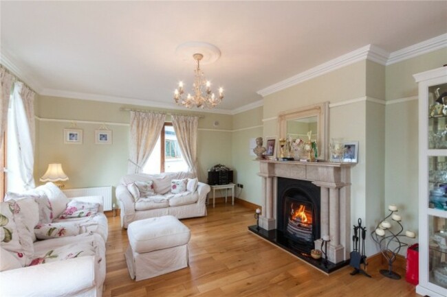 The house has a living room with a cast iron fireplace with timber surround and double doors to the sun room, a kitchen/dining room with tiled floor and oil-fired stove with brick surround and patio doors to the rear garden, a games room, utility room and sun room downstairs. Upstairs there are six bedrooms, three of which are en-suite.