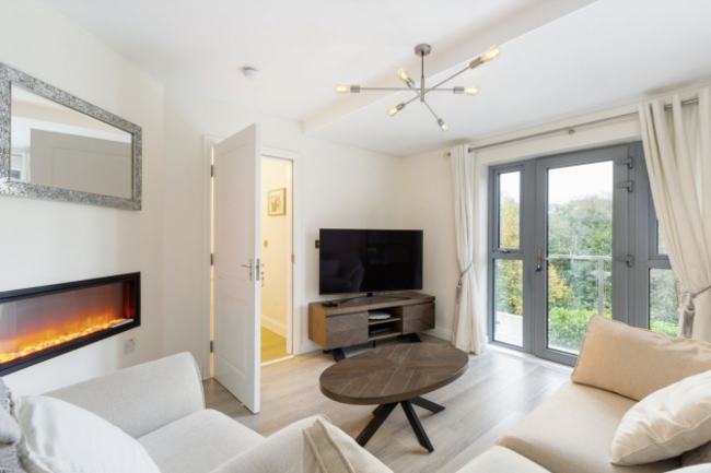 21 The Meadows is an A-rated duplex apartment in showhouse condition. Spanning about 125 m², this property offers more living space than many modern homes and has a private front garden, a sunny back garden with a lawn, patio and shed, as well as south-facing balconies. The first floor features a welcoming lobby, a spacious kitchen with dining space and a utility area along with a guest toilet and a cosy lounge with a fireplace and balcony access.