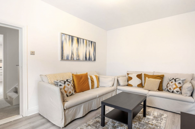 The property has been extensively refurbished, with new flooring, neutral décor and modern finishes throughout. The ground floor includes a spacious kitchen with dining space filled with integrated appliances, a cosy lounge and a guest toilet. Upstairs, there are two bright double bedrooms with built-in wardrobes and a brand-new family bathroom. Ideal for first-time buyers, investors or downsizers, this property also benefits from gas central heating, double-glazed windows and comes fully furnished.