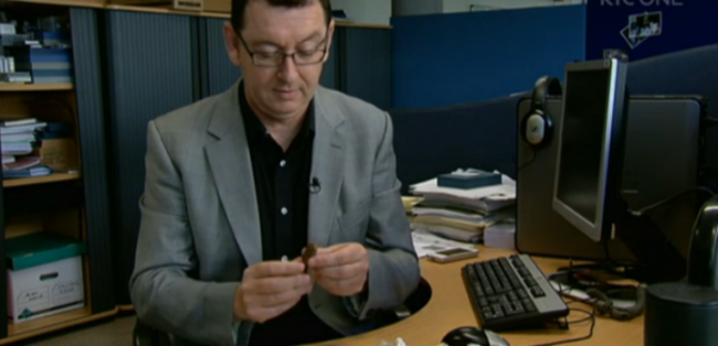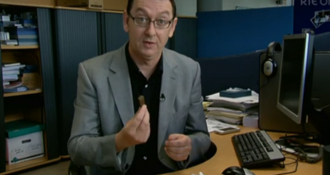 During the course of the package — shot around the vaults of CHQ in Dublin’s IFSC, and in a variety of shabby looking basement office spaces for a bit of extra ‘murkiness’ — presenter Richard Downes purchased a sizeable enough lump of cannabis.