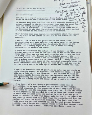 The document is based on observations by Irish diplomatic officials but also on conversations with Prince Charles’s team based in St. James’s Palace following the visit to Ireland.