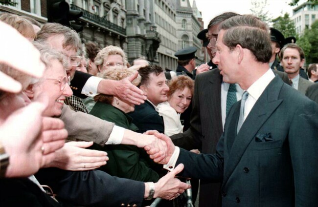 People greet Prince Charles as he went for an informal walkabout along Dublin’s College Green in 1995 Martin Keene via PA Images