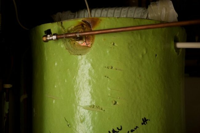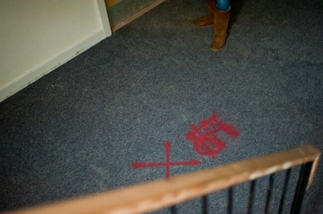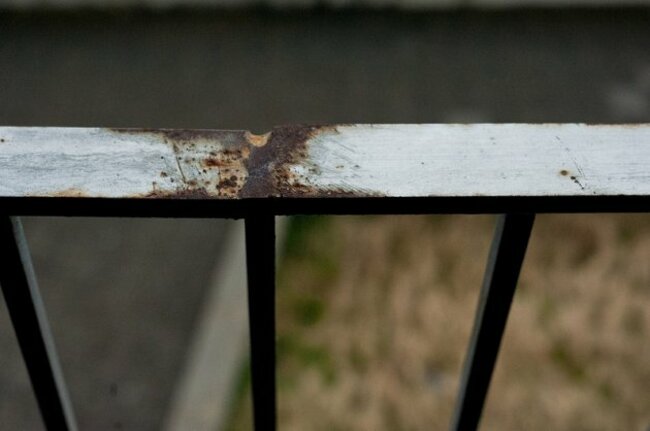 Rusting railings outside the front doors.