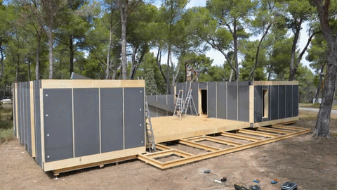 If you’re thinking about building your own home, this house was built in only two weeks using just an electric screwdriver. It features stacked recyclable wooden panels and insulation blocks, held together with timber screws.