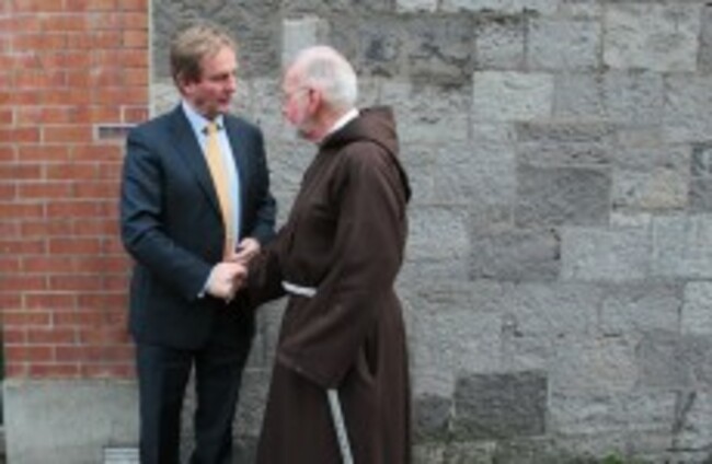 The Taoiseach with Brother Kevin Crowley from the Capuchin Day centre in Smithfield, Dublin yesterday. Leon Farrell/Photocall Ireland