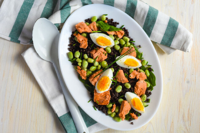 Salmon, Broad Bean, Puy Lentil and Spinach Salad
