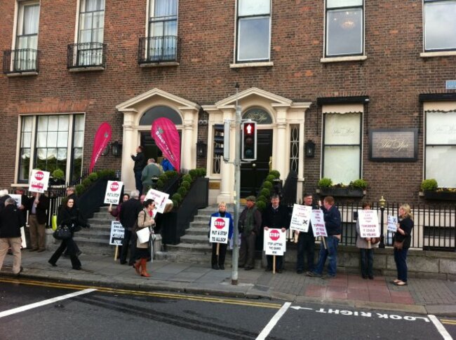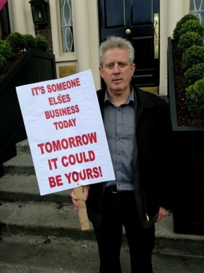 Tom O’Reilly’s engineering business property was taken from him by receivers around two years ago after he built up €600,000 in bad debt. Speaking to TheJournal.ie at the protest, which was staged outside an auction Shelbourne Hotel, O’Reilly said he struggled to get clients to pay the business for services and eventually the debt became overwhelming.