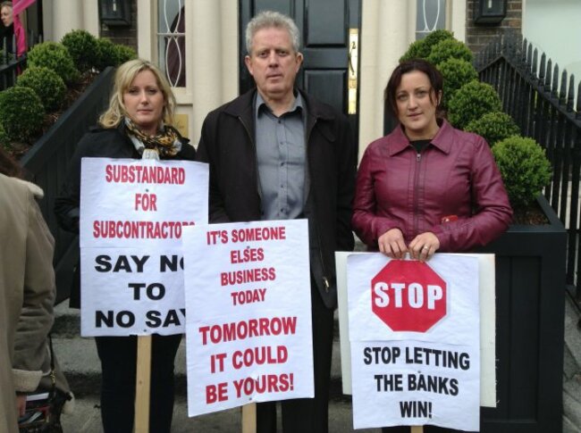 At the protest of around 12 people today, O’Reilly was supported by people from his community who praised him for his efforts in fundraising and organising events for his local area. The engineering business employed around 50 people from the the area and protesters said the loss has impacted on the entire community.