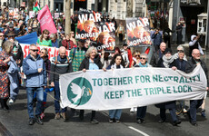 A garda inspector, addressing those gathered with a megaphone, said gardaí respects the rights of those to protest peacefully.