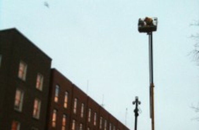 A PROTESTER HAS PARKED a crane outside Government Buildings on Kildare Street this morning.