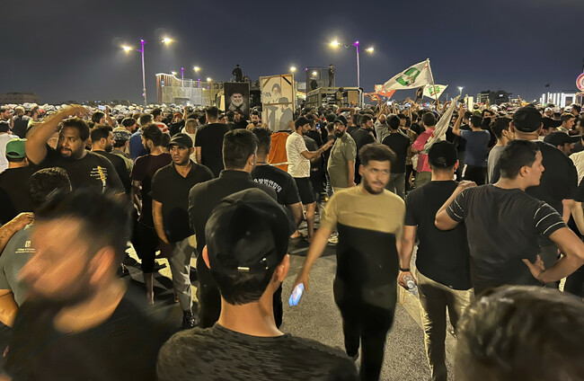 Chanting in support of al-Sadr and carrying images of the prominent leader and the flag associated with his movement, along with the Iraqi flag, hundreds of protesters attempted to enter the Green Zone and clashed with security forces before dispersing.