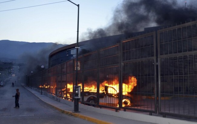Mexico Violence Vehicles set to fire by rural college students, with a message on one that reads in Spanish; We want justice, burn outside the entrance of the Governor's Palace in Guerrero's state capital, Chilpancingo. AP / Press Association Images AP / Press Association Images / Press Association Images