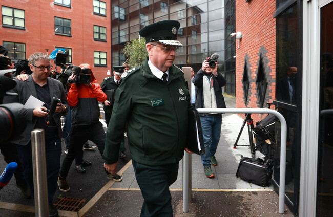 embedded273528771 PSNI Chief Constable Simon Byrne leaves James House in Belfast after a special meeting of the Policing Board PA PA