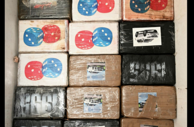 PSNI Commander Superintendent Norman Haslett said “a subsequent search of the vehicle revealed a large quantity of suspected cocaine concealed within boxes containing frozen meat products”.