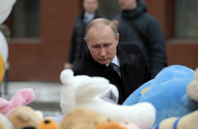 RUSSIAN PRESIDENT VLADIMIR Putin has said “criminal negligence” was to blame for a Siberian shopping centre fire that killed at least 64 people, including 41 children after they found themselves trapped in the inferno because of locked doors.