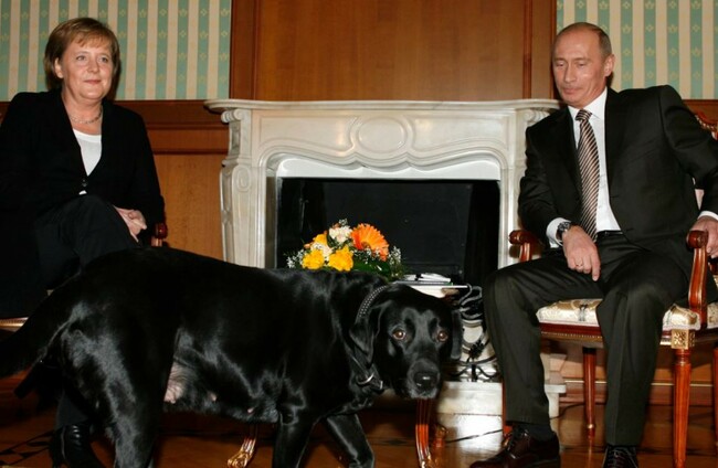 During a meeting in Sochi in 2007 the German chancellor was photographed looking uncomfortable around Putin’s dog Konni.