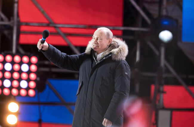 Putin won nearly 77% of the vote in polls which his most vocal opponent was banned from running in.