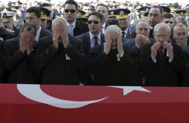 Mourners at the funeral of a soldier killed by IS militants on Tuesday Burhan Ozbilici/AP Photo