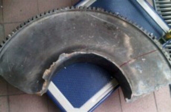 This undated image provided by the Australian Transport Safety Bureau shows a jagged and bent piece of a turbine disc from a Qantas superjumbo Rolls-Royce engine that exploded on 4 November, 2010. AP/Press Association Images