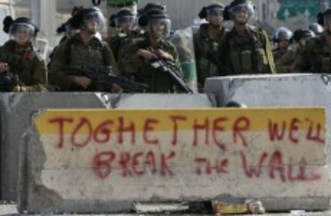 Israeli forces stand by during clashes with Palestinians at Qalandia checkpoint between Jerusalem and Ramallah yesterday. Tsafrir Abayov/AP/Press Association Images