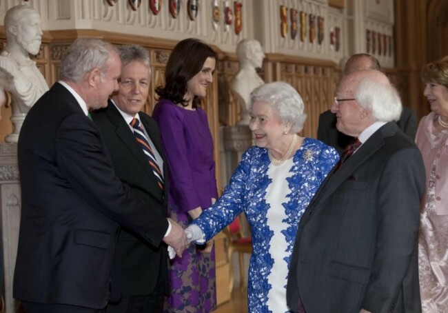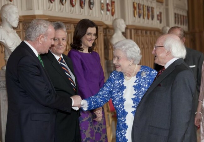 The Sinn Féin politician stood for a toast proposed by Higgins, as an orchestra played God Save The Queen, at a banquet being held in honour of the President.