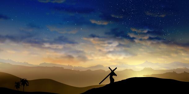 How many times does Jesus fall while carrying his cross, according to the Stations of the Cross?