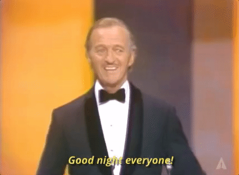 Why did 1974 Oscars host David Niven say 'Ladies and gentleman, that was almost bound to happen'?