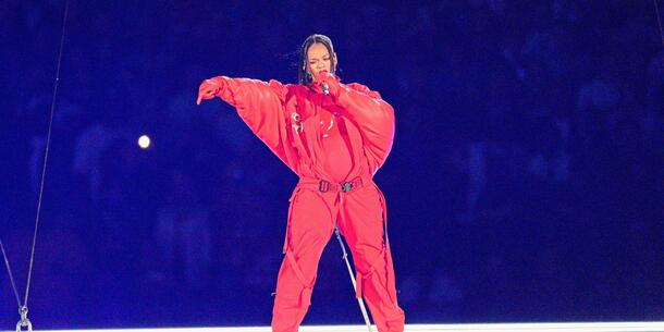 In 2023, Rhianna commanded halftime at the Superbowl. Who did she bring out as a guest?