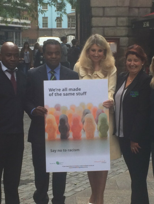 As part of the initiative, a huge poster bearing the message “we’re all made of the same stuff… say no to racism” has been placed on Dublin’s Dame Street.