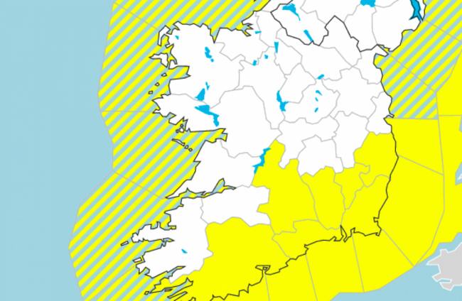 The national forecaster issued the status yellow warning for counties Carlow, Kilkenny, Wexford, Wicklow, Cork, Tipperary, and Waterford. The alert will remain in place until 11am.