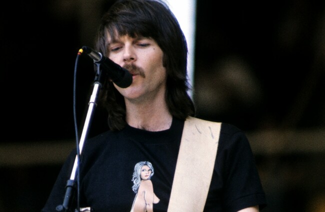 Eagles bassist Randy Meisner performing on stage, circa 1975. EMPICS Entertainment