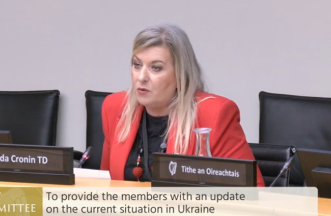 Speaking in the Joint Committee on Foreign Affairs and Defence yesterday, which was attended by the Ukrainian Ambassador to Ireland, Larysa Gerasko, Cronin said the comments were “misinterpreted”.