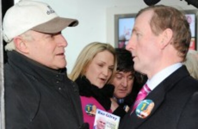 Enda Kenny is confronted by founder of Direct Democracy Ireland, Raymond Whitehead, when on the campaign trail with candidate in the upcoming Meath East By-election. Laura Hutton/Photocall Ireland